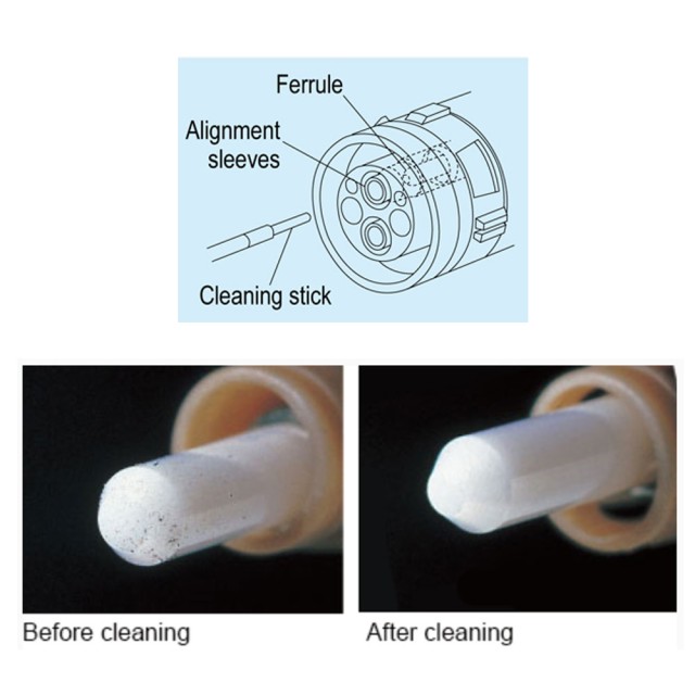 Ključni deli konektorja, ki jih je treba očistiti, so konice in stranice ovojev, notranje stene poravnalnih tulcev ter notranjost in zunanjost ohišij konektorjev. Upoštevajte, da lahko praske in delci tujkov na konici tulca onemogočijo prenos optičnih vlaken. Pri čiščenju priključkov hibridnih optičnih vlaken za kamere je treba uporabiti naslednje postopke.