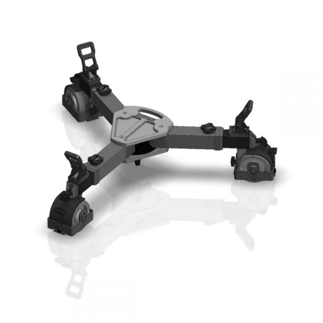 To aluminijasto podvozje z raztegljivimi kolesci je zasnovano za stative EFP in studijske stative (1- in 2-stopenjske).