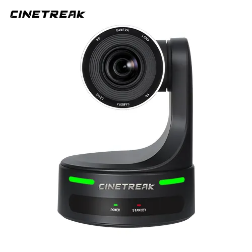 CineTreak CT-PT20 je kamera PTZ visoke ločljivosti, izdelana za dinamično video produkcijo in pretakanje. Opremljena je z 1/2,8-palčnim tipalom HD CMOS in snema gladke videoposnetke Full HD 1080p60 ter ima funkcijo samodejnega sledenja, ki zagotavlja, da voditelji ali govorniki ostanejo v kadru brez ročnega prilagajanja. 20-kratna optična povečava in 16-kratna digitalna povečava omogočata natančne bližnje posnetke tudi z velikih razdalj, zato je primeren za dvorane, učilnice, studie in prireditvene prostore.