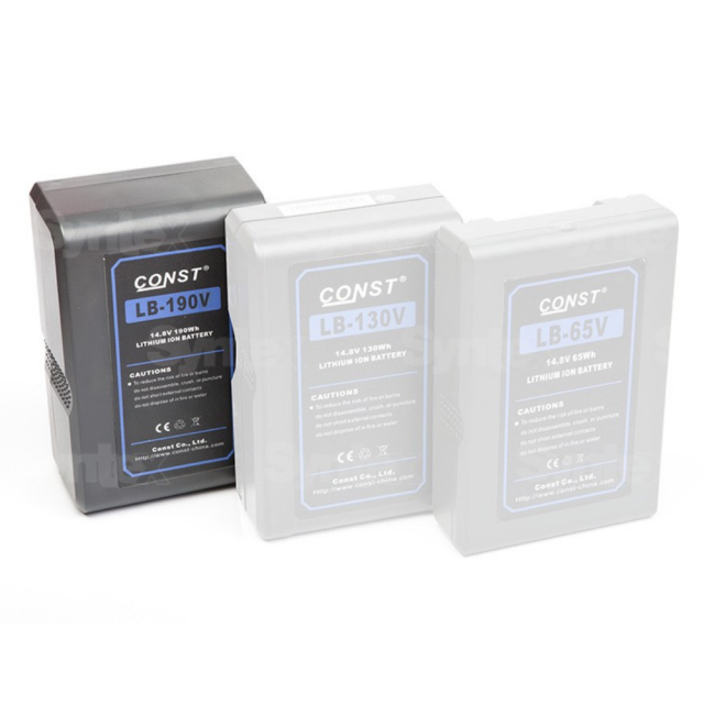 Baterija LB-190V z največjo zmogljivostjo iz serije profesionalnih litij-ionskih baterij CONST z nastavkom V-Mount.