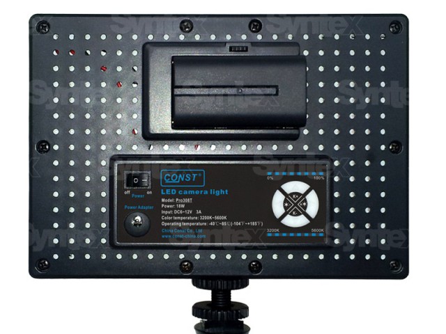 V serijo profesionalnih LED luči za kamere CONST 308 spadata modela Pro308 (enobarvni) in Pro308T (dvobarvni, nastavljiv na pynule).
