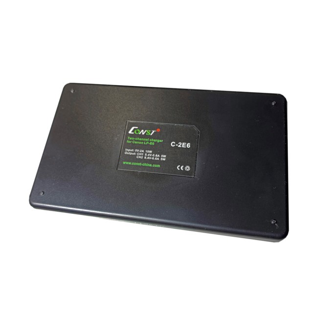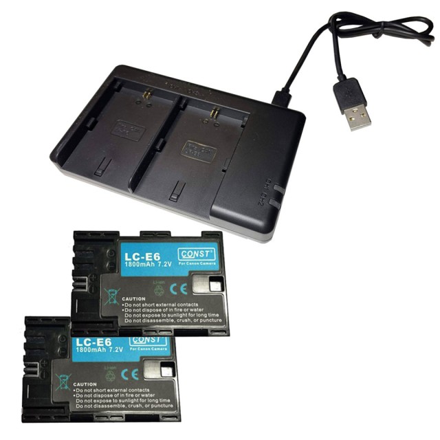 2 kosa baterij CONST LC-E6 (LP-E6), 7,2 V, 1800 mAh in dvokanalni polnilnik CONST C-2E6