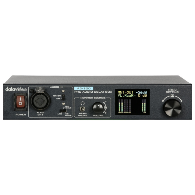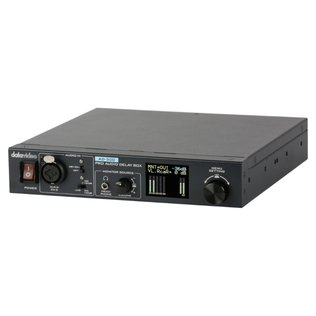 Datavideo AD-300 je profesionalna naprava za zakasnitev in učinke, ki ponuja vrsto integriranih funkcij za obdelavo zvoka ter sinhronizacijo zvoka in videa pri produkcijah v živo.