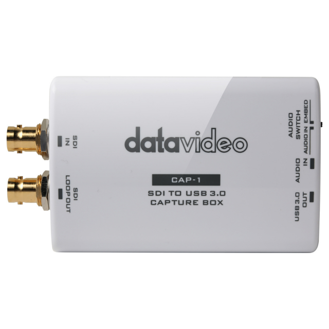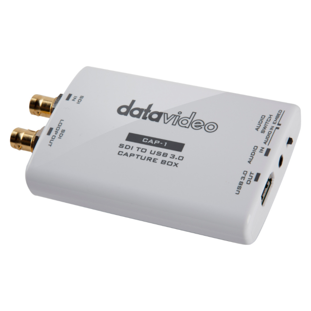 Datavideo CAP-1 je naprava SDI > USB 3.0 UVC za snemanje ali pretakanje videa do 1080p50/60 iz naprav HD/3G-SDI v računalnike Windows, Linux in macOS s katero koli podprto aplikacijo/storitvijo (OBS, VLC, Skype itd.). Ponuja prehodni vhod SDI, podporo za vgrajeni in zunanji zvok ter popolno namestitev po načelu plug-and-play. V prodaji od 7/8 2020.