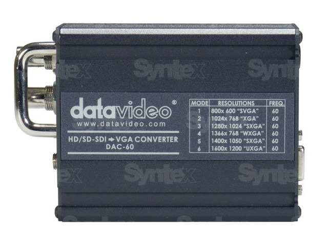 Datavideo DAC-60 je samostojni zunanji video skalirnik, ki omogoča enosmerno pretvorbo signala HD/SD-SDI v VGA.