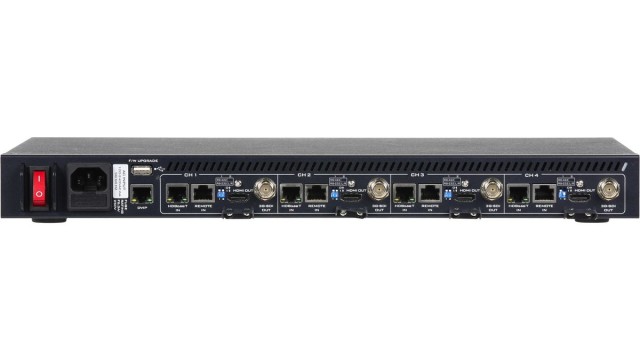 Štirikanalni sprejemnik HDBaseT HBT-50 z izhodoma HDMI in SDI zagotavlja napajanje, prenos signala in daljinsko upravljanje do štirih združljivih naprav na razdalji približno 100 m. Napaja lahko kamere PTZ, ki podpirajo standard PoE, in omogoča tudi nadzor njihovih prednastavitev, zaslonke itd. Predvsem pa bo zagotovil signal SDI za vašo režijo! HBT-50 podpira hkratni izhod signalov SDI (do 1080p60) in HDMI (do 1080p60) ter nadzor kamere. To omogoča enostavno ustvarjanje prilagodljivih produkcijskih verig IP z režijskimi napravami, snemalniki itd.