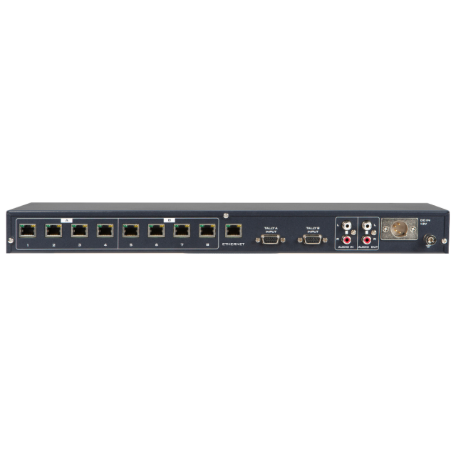 | Priključki | 2 x 15-pinski priključki Sub-D Tally 1 x 1/8" / 3,5 mm stereofonski kombinirani priključek za slušalke/mikrofon 1 x 1/4" vtič za stereo slušalke 1 x vtič za luč USB 1 x XLR vtič za mikrofon |