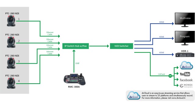 Različica NDI kamere Datavideo PTC-280 4K PTZ vključuje podporo za tehnologijo NewTek NDI|HX za povezavo kamere z infrastrukturo IP z enim samim kablom Ethernet, ki prenaša video, zvok, napajanje (PoE), signalizacijske ukaze in ukaze za daljinsko upravljanje. S tehnologijo NDI Virtual Input lahko kamero preprosto uporabite tudi kot vir videa v aplikacijah za pretakanje videa v živo, vkl. Skype, GoToMeeting, WebEx, Zoom in druge.