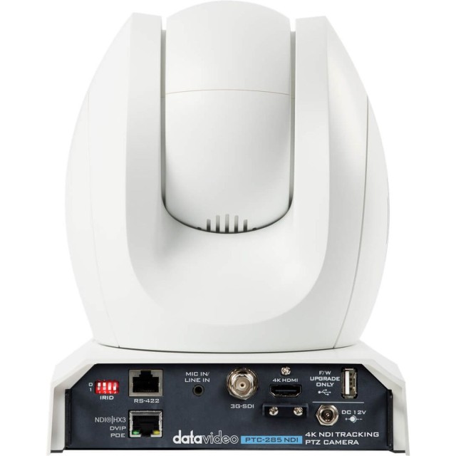Datavideo PTC-285NDI profesionalna namestitvena kamera 4Kp50/60 ponuja samodejno sledenje umetniku, dvojno pretakanje RTSP/RTMPS (Facebook, YouTube, dvCloud ...), tehnologije NDI|HX3 in PoE, široko paleto možnosti daljinskega upravljanja (serijska RS-422, IP, DVIP, Sony VISCA over IP) ter hkratni izhod HDMI 2.0 in IP videa do 2160p50/60 ter 1080p60/50 na izhodu 3G-SDI. To omogoča popolno vključitev kamere v skoraj vsako produkcijsko verigo.
