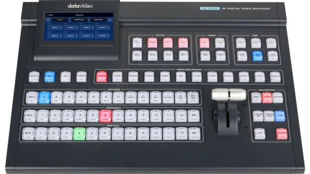 Osemkanalni 4Kp60/50 SE-4000 ponuja vmesnike 12G-SDI in HDMI 2.0, enostavno upravljanje z vgrajenim 5-palčnim zaslonom LCD, širok nabor funkcij in učinkov (Chroma Key, Luma Key, DSK, PIP, DVE, Wipe Generator ...) ter možnost dodeljevanja vhodov/izhodov vsem razpoložljivim gumbom. SE-4000 ima 12 video vhodov in 7 izhodov, standardno 19-palčno zasnovo za montažo in napredne učinke, vključno s povečanjem ločljivosti za vhode, 2x učinek slike v sliki in 2D DVE učinke.