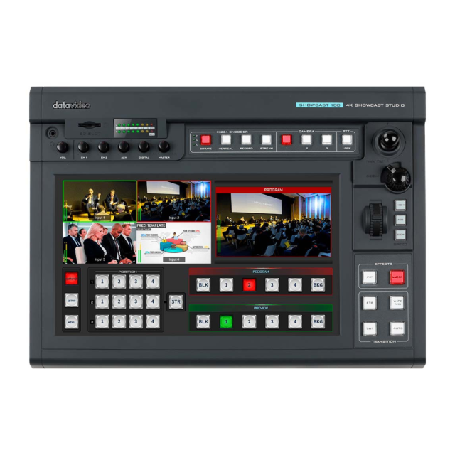 Štirikanalni režijski sistem 4K Datavideo ShowCast 100 ponuja integriran 14-palčni zaslon na dotik za enostavno prijavo štirih video virov HDMI, besedilne in grafične učinke, daljinski nadzor kamere, prenos v živo, mešanje zvoka in snemanje videa H.264 na kartico SD. V prodaji 6/7 2022.