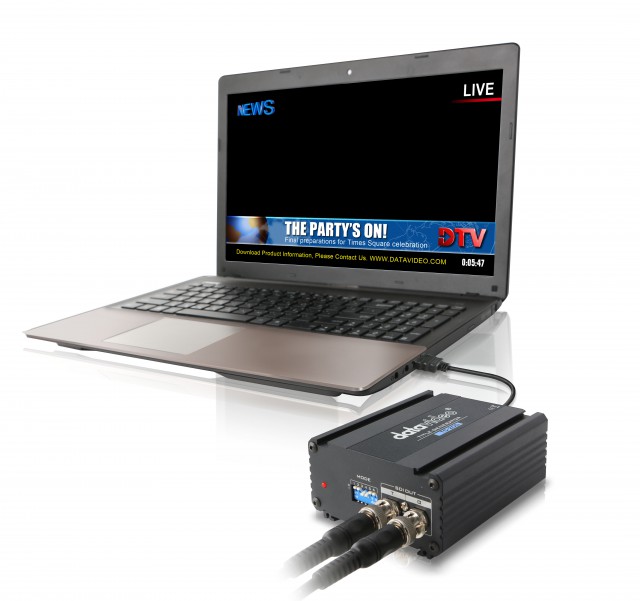 Uporaba prekrival CG v neposrednem prenosu je bila nekoč zahtevna z velikimi robustnimi računalniki s posebnimi izhodnimi karticami za razdelitev izhodnega signala na različne kanale. Datavideo zdaj predstavlja zelo majhno, zanesljivo in cenovno dostopno rešitev - TC-200. Z njo lahko za prenos CG v oddajo uporabite kateri koli prenosni računalnik z izhodom HDMI! Zahteva operacijski sistem Windows 7 ali 8
