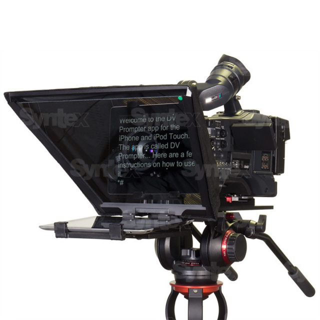 Paket Datavideo Teleprompter je zasnovan za uporabo s tablicami iPad in Android ter kamerami ENG. Vključuje pokrov iz tkanine za kamero, stekleni okvir, stekleno folijo 60/40, napravo za napovedovanje, nastavljive nosilce za namestitev tabličnega računalnika (namestite lahko do 12,9-palčni iPad Pro) in stojalo za kamero.