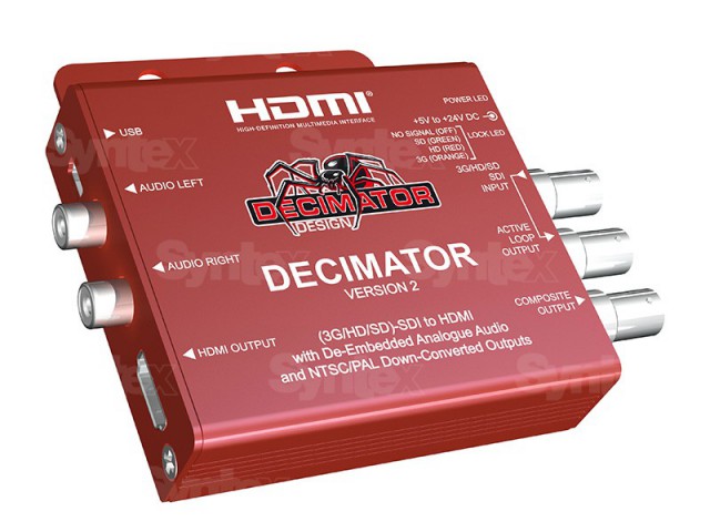 Funkcionalnost naprave DECIMATOR 2 podjetja Decimator Design je bila nadgrajena z novo posodobitvijo vdelane programske opreme USB, ki zdaj hkrati prevaja (3G/HD/SD)-SDI na HDMI in NTSC/PAL z odstranjenim anaogue zvokom (prek priključkov 2 x RCA).