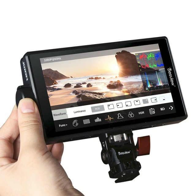 Desview A5 je kompakten 5,5-palčni Full HD monitor s tipskim zaslonom, ki ima svetel IPS zaslon, napredna orodja za spremljanje in 4K HDMI vhod/izhod, zaradi česar je idealen za filmarje, ustvarjalce vsebin in snemalce dogodkov, ki potrebujejo natančno in prenosno spremljanje na snemalnem prizorišču.