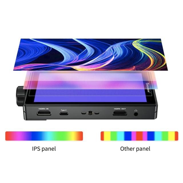Desview A5 PRO je 5,5-palčni Full HD IPS monitor na kameri z jasnostjo 600 nitov, 10-bitno barvno globino in ultra širokim barvnim spektrom 99,9 % DCI-P3. Z 4K60 HDMI vhodom/izhodom, profesionalnimi orodji za valovne oblike in 3D LUT kalibracijo je zasnovan za natančno spremljanje pri produkciji filmov in videov.