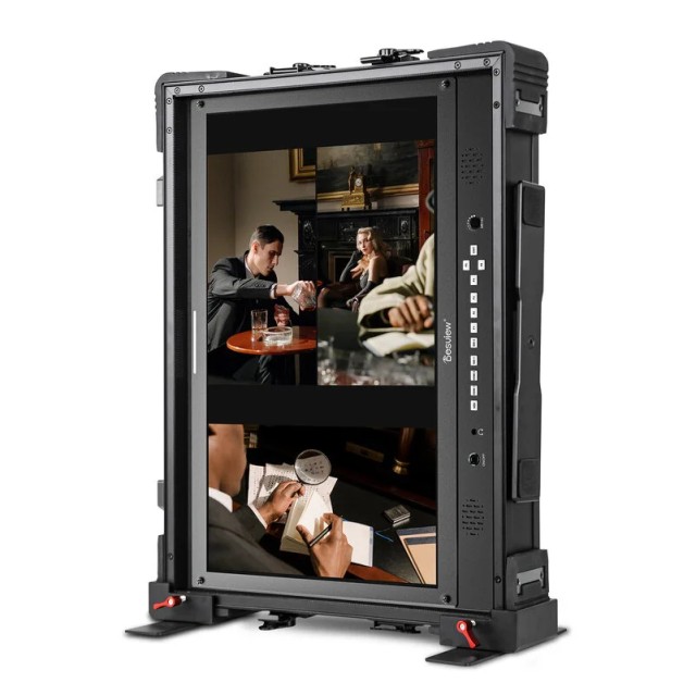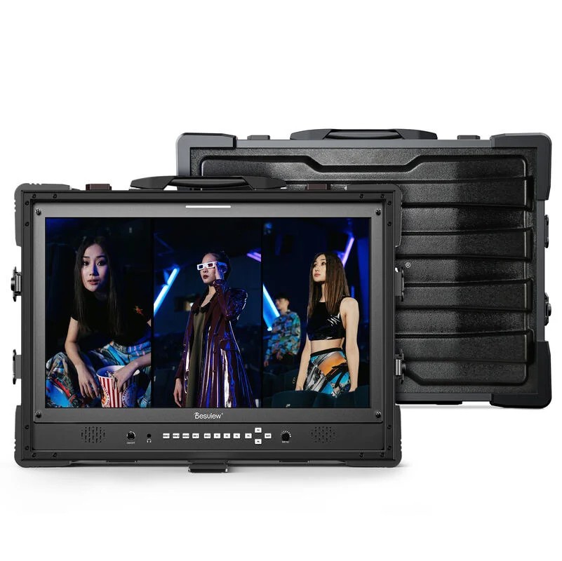 Monitor Desview D21 je zasnovan za profesionalno produkcijo v živo, radiodifuzno tehnologijo in okolja za spremljanje več kamer. D21 ima inovativen sistem za prikazovanje več zaslonov in podpira enojne, dvojne, trojne in štirinožne zasnove zaslona ter način slika v sliki, kar omogoča enostavno sočasno spremljanje več video virov. Zaslon z visoko svetlostjo 400 nitov zagotavlja jasno vidljivost v studijskih in kontrolnih sobah. Monitor podpira vhodne načine 4K HDMI in 3G-SDI ter ponuja prilagodljivo povezljivost za sodobne oddajne delovne tokove. Vgrajeno spremljanje polne valovne oblike omogoča natančno analizo video signalov, napredna podpora 3D LUT pa uporabnikom omogoča nalaganje prilagojenih LUT-ov za kinematografsko barvno korekcijo in ustvarjalne videze. Desview D21 je izdelan iz trpežnega okvirja iz aluminijeve zlitine in opremljen z zaščitnim kovčkom, ki je primeren za profesionalno rabo, ter je zasnovan tako, da zdrži zahtevno profesionalno rabo in hkrati zagotavlja zanesljivo in visokokakovostno spremljanje.