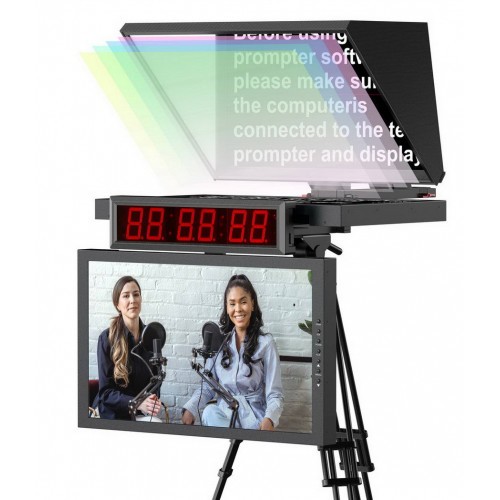 Teleprompter Desview DT24-P z dvojnim zaslonom ima dva 24-palčna Full HD monitorja s 70/30 odbojnim steklom za delitev žarka, brezžični daljinski upravljalnik in žični pedalen upravljalnik ter trpežno zaščitno torbo. Zasnovan je za produkcijo v studiu in na terenu, podpira več formatov datotek, profesionalne kamere in nastavljivo hitrost predvajanja…