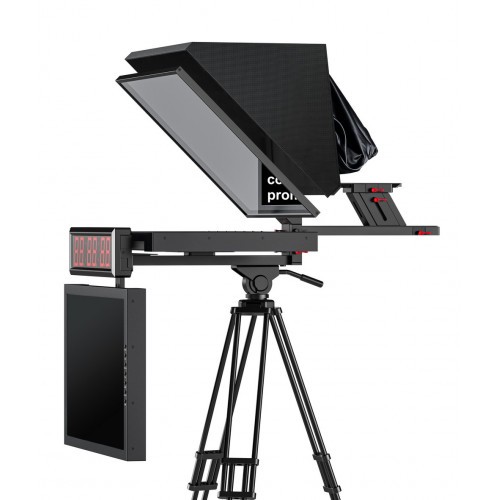 Sistem je opremljen z brezžičnim daljinskim upravljalnikom in žičnim pedalom za udobno upravljanje pomikanja besedila, nastavljivo hitrostjo predvajanja in podpira več datotečnih formatov, kot so TXT, Word in PDF v različnih jezikih. Modularni sistem pritrditve in združljivost z večino profesionalnih stojal zagotavljata fleksibilnost v studijskih ali terenskih nastavitvah. Za spremljanje časa predvajanja med oddajami je mogoče priključiti tudi dodatne časovnike.