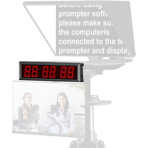 Desview Timer je nepogrešljiv dodatek za teleprompterje, ki omogoča talentom jasen in natančen prikaz časa med branjem scenarijev. Zasnovan je za uporabo s teleprompterji DT20, DT22 in DT24, varno se namesti nad monitorjem talenta za optimalno vidljivost. Velik 6-mestni rdeči LED-zaslon zagotavlja, da lahko talent pred kamero brez motenj spremlja čas med predstavitvami, neposrednimi prenosi in snemanji. Njegova zanesljiva zasnova se brezhibno integrira v sistem teleprompterja in pomaga ohranjati tempo in profesionalnost med produkcijami.