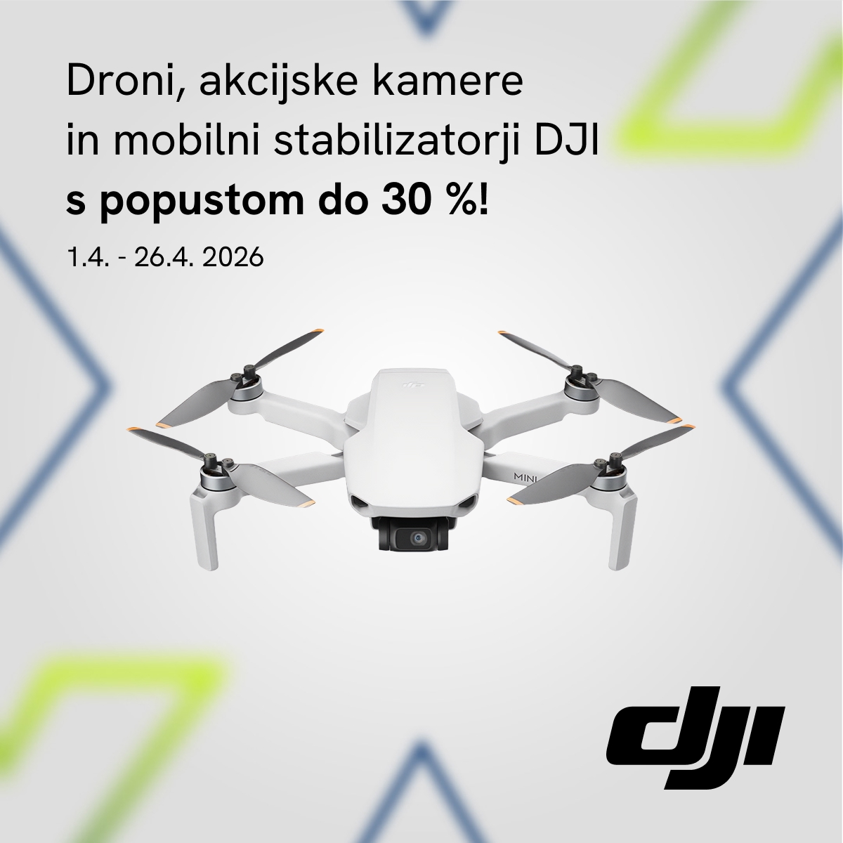 Od 1. do 26. aprila 2026smozavaspripravilipostopnepopuste na 2 skupini izdelkov DJI. Zahvaljujoč tej akciji lahko spopustom kupitene le vrhunskedrone instabilizatorjezamobilne telefone, ampak tudiakcijske kamere!