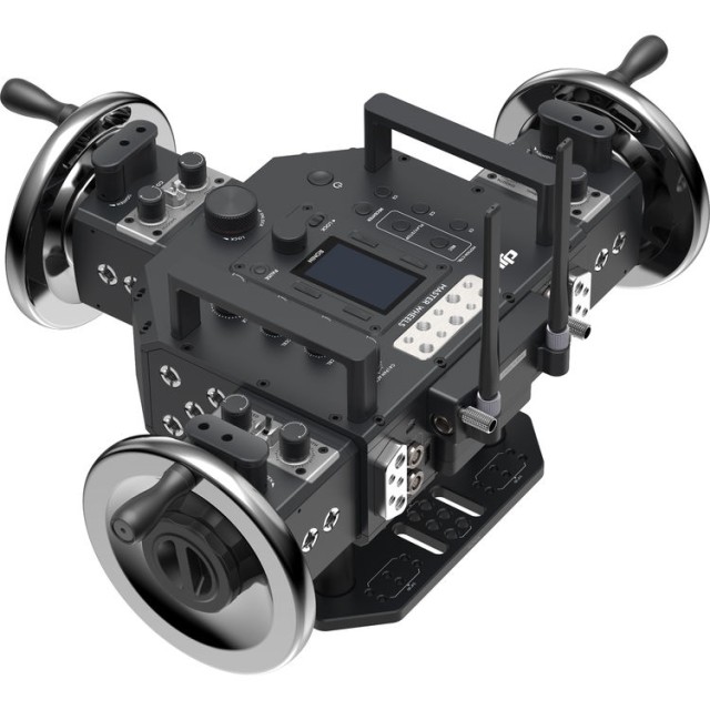 DJI Master Wheels 3-Axis (RH) je profesionalni brezžični krmilnik za stabilizator, ki omogoča natančno krmiljenje z nizko zakasnitvijo za vsako os stabilizatorja. Združljiv je z Ronin 2, Ronin-S in izbranimi stabilizatorji tretjih proizvajalcev prek SBUS, ima tri visoko natančna krmilna kolesa, prilagodljive gumbe za hitrost in dušenje ter podpira brezžično delovanje na velike razdalje do 1,8 milj za filmsko, televizijsko in video produkcijo.