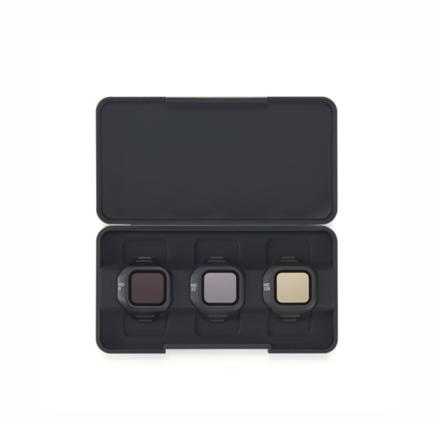 Komplet filtrov DJI Mini 5 Pro ND (ND8/32/128) je lahek, natančno zasnovan dodatek, ki ustvarjalcem omogoča večji nadzor nad osvetlitvijo v svetlih pogojih, kar omogoča gladke kinematografske posnetke, posnetke z dolgim časom osvetlitve in časovne posnetke profesionalne kakovosti z DJI Mini 5 Pro.