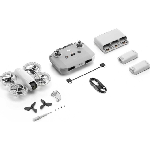 Z infrardečim in monokularnim sistemom za določanje položaja lahko DJI Neo stabilno lebdi v zraku in ohranja stabilnost tudi v vetru do 4. stopnje. Podpira tudi samodejno vrnitev na dom (RTH) za priročno in brezskrbno delovanje. Ni vam treba skrbeti za vrnitev na izhodiščno točko, za vzlet/pristajanje neposredno z dlani ali upravljanje prek mobilne aplikacije, Neo se bo po končani poti leta samodejno vrnil na izhodiščno točko. Pri uporabi daljinskega upravljalnika Neo podpira vrnitev na izhodišče (RTH) in Failsafe RTH. S časom letenja do 18 minut lahko DJI Neo opravi več kot 20 letov zapored iz dlani in nazaj, kar vam omogoča, da dokumentirate vse, kar potrebujete. Za preprosto polnjenje dron s podatkovnim kablom USB-C priključite neposredno na vir napajanja. Dronu DJI Neo so poleg drona priloženi tudi pametna baterija za letenje, zaščitni loki za propelerje in drugi pripomočki, ki tudi začetnikom omogočajo hiter uvod v svet dronov. Baterije lahko kupite tudi ločeno in tako podaljšate čas letenja. Poleg tega lahko z opcijskim dvosmernim polnilnim vozliščem DJI Neo hkrati polnite tri baterije, kar poveča hitrost in učinkovitost polnjenja.