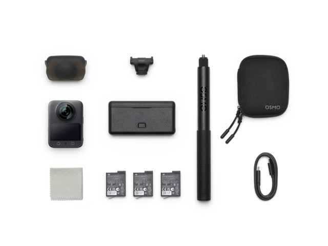 DJI Osmo 360 Adventure Combo je posebej zasnovana kamera za 360° posnetke. Ima povsem nov kvadratni slikovni senzor HDR, ki ohranja enako 360° vidno polje kot običajni 1-palčni senzor, hkrati pa povečuje učinkovito izkoriščenost senzorja za 25 %. Različica Adventure Combo vključuje tudi vrsto dodatne opreme.