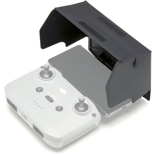 DJI RC-N1 Monitor Hood je zasnovan za zmanjšanje bleščanja in izboljšanje vidljivosti pri letenju v neposredni sončni svetlobi. Enostavno se pritrdi na daljinski upravljalnik RC-N1 in zagotavlja zaščito od zgoraj in s strani, da blokira močno svetlobo, kar olajša gledanje zaslona pametnega telefona med pilotiranjem drona na prostem.