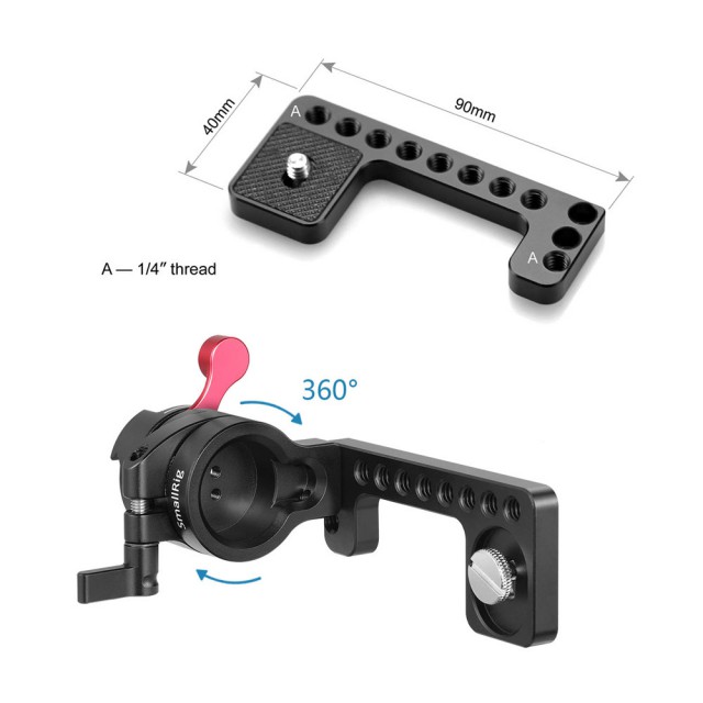 Držalo SmallRig EVF Mount 1594 je mogoče na eni strani namestiti na integrirano tirnico NATO/NATO Rail 1195 na kletki fotoaparata, na drugi strani pa lahko monitor/EVF pritrdite z vijakom 1/4". Prilagoditev je 360-stopinjska in omogoča hitro prilagajanje ter prilagodljive kote spremljanja. Na vrhu ima gumijasto blazinico, ki preprečuje naključne praske.
