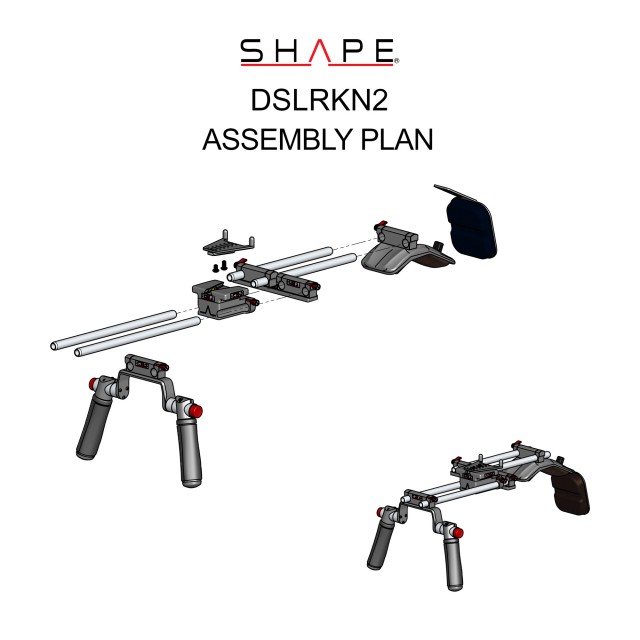 SHAPE DSLR Kirk Neff Offset Rig je 15 mm palica za pritrditev na ramo, zasnovana za DSLR ali druge kompaktne fotoaparate. Zaradi zamaknjene zasnove je zaslon LCD fotoaparata pred vašimi očmi, kar olajša gledanje med fotografiranjem. Naprava je osredotočena na osnovno ploščo za DSLR Kirk Neff Baseplate 2.0 in ima nosilec za odmik palice ter par 10″ in 12″ dolgih 15 mm palic, ki podpirajo priloženo ramensko blazinico in ročaje. Podlogo za ramo in ročaje lahko odstranite za namestitev na stativ. Fotoaparat se na osnovno ploščo pritrdi s ploščo za fotoaparat s hitrim sproščanjem V-lock. Plošča je združljiva tudi s podpornimi sistemi drugih proizvajalcev, ki uporabljajo vmesnik V-lock. Osnovna plošča ima objemke za podporo enega od 15 mm parov palic, kar omogoča dvojno držalo za roke pred osnovno ploščo in držalo za zamik palice za njo.