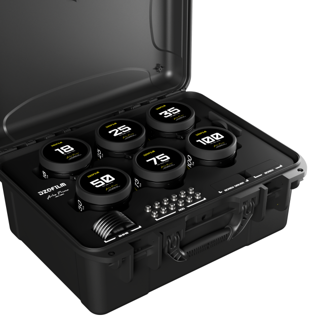 DZOFILM Arles Prime 6pc Metric Lens Kit PL Mount Black Case DZO SAP6MPL. Ujemite kinematografske vizije s kompletom objektivov DZOFILM Arles Prime 6 v PL-mount in elegantnem črnem kovčku. Ta metrični komplet vključuje 18-mm, 25-mm, 35-mm, 50-mm, 75-mm in 100-mm objektive, ki zagotavljajo izjemno kakovost slike in dosledno delovanje za profesionalno snemanje filmov. Izboljšajte svoje produkcije s temi vsestranskimi in zanesljivimi kinematografskimi objektivi.