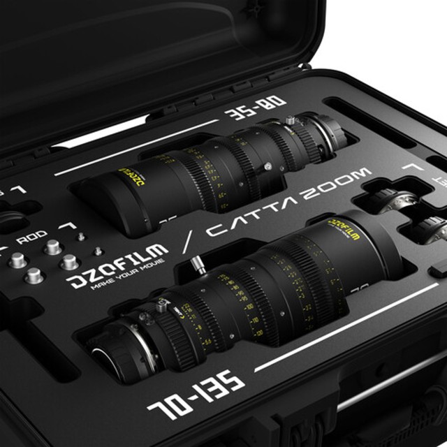 Dodajte dva objektiva Catta 35-80 in 70-135mm T2.9 E-Mount Cine Zoom 2-Lens Bundle iz DZOFilma v svoj komplet za dokumentarno, televizijsko ali spletno produkcijo. Paket vključuje objektiv Catta 35-80 mm za kinematografski film, objektiv Catta 70-135 mm za kinematografski film in trdo ohišje. Oba objektiva imata nastavek E, ki ga lahko zamenjate z izbirnimi nastavki RF, L, X ali Z, vsak objektiv pa je na voljo v elegantni beli barvi.