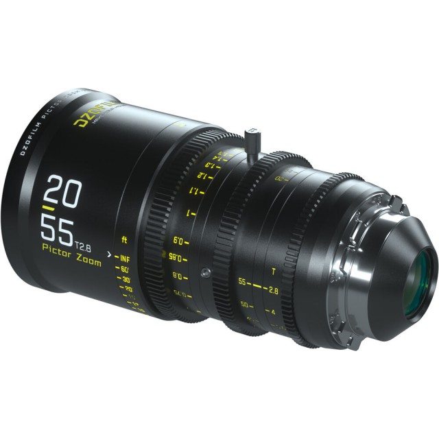Parfokalni filmski objektiv DZO Pictor 20-55 mm T2,8 pokriva senzorje formata Super 35 / APS-C, ponuja zaslonko T2,8 v celotnem območju goriščne razdalje in je opremljen z izmenljivima bajonetoma PL in EF. Zasnova objektiva praktično odpravlja dihanje in zagotavlja ostro risbo v celotnem območju ter lep prikaz prizora zunaj globinske ostrine zaradi zaslonke objektiva 16. Obročki za ostrenje, zaslonko in zoom so seveda nazobčani za enostaven daljinski nadzor s sistemi za stransko ostrenje (M0,8; premik obročka za ostrenje za 270°). Prednji premer je standardnih 95 mm za običajne kompendije, filterski navoj je 86 mm. Na voljo je tudi nogica za podporo objektiva v opremi. Črna različica. Teža približno 1520 g. Za bajonete PL in EF.