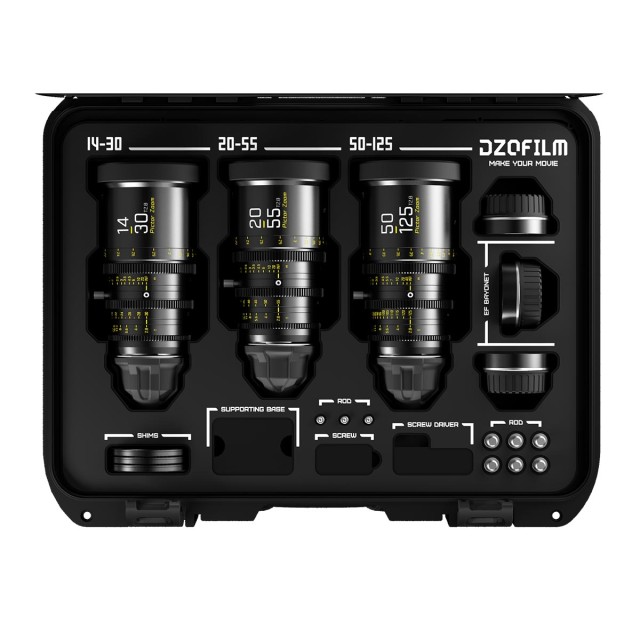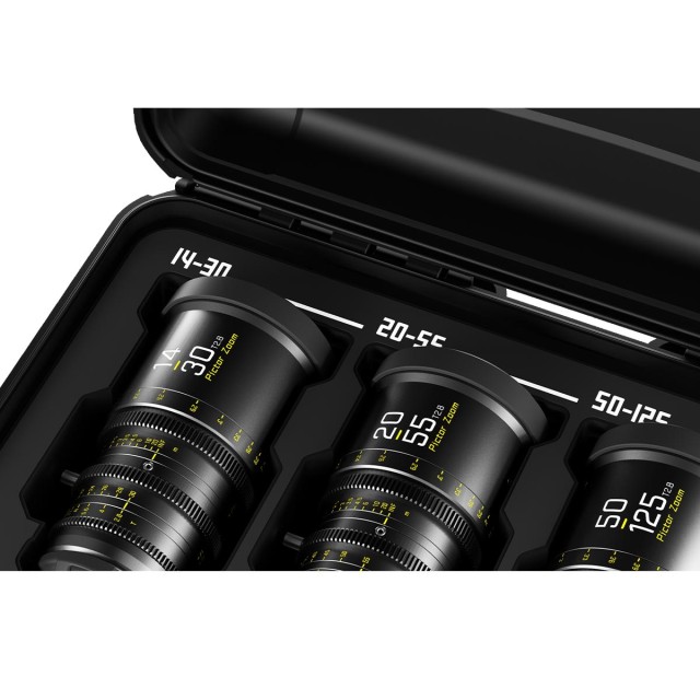 Komplet treh objektivov Pictor T2.8 Super35 Zoom proizvajalca DZOFilm je sestavljen iz treh objektivov z zoomom - od 14 do 30 mm, od 20 do 55 mm in od 50 do 125 mm - v standardni črni barvi. Objektivi pokrivajo razširjeno območje povečave z razmeroma hitro največjo zaslonko. Oba pokrivata senzorje Super35 in imata podobno dolžino, težo, položaj zobnikov in sprednji zunanji premer objektiva, kar omogoča hitro menjavo objektivov.