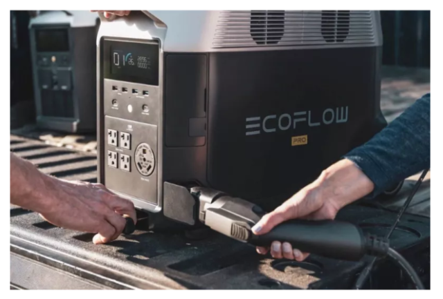 Baterijsko postajo EcoFlow DELTA Pro lahko hitro napolnite na polnilnih postajah za električna vozila z adapterjem EV X-Stream, ki zagotavlja do 3400 W vhodne moči za hitro polnjenje od 0 % do 100 % v samo 1,7 urah. Združljiv s konektorji tipa 1 (SAE J1772).