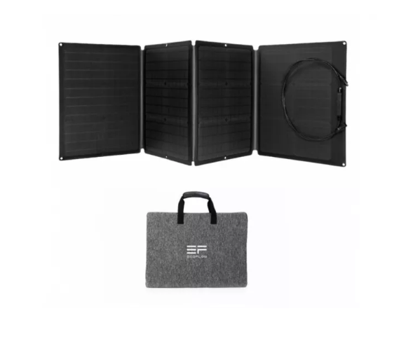 Zložljivi sončni panel EcoFlow 110W je visoko učinkovita, prenosna rešitev za napajanje z monokristalnimi silicijevimi celicami, vodotesno konstrukcijo in prilagodljivo nastavitvijo kota – idealna za polnjenje elektrarne EcoFlow in drugih združljivih generatorjev, kjer ni omrežne električne energije.