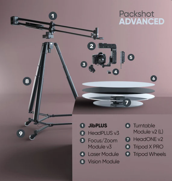 Edelkrone PackShot Bundle - JibPLUS Advanced je motoriziran, večosni sistem, ki je zasnovan za nemoteno, samodejno premikanje kamere pri profesionalni videografiji izdelkov in snemanju filmov. Ta sistem z natančnim sledenjem, brezžičnim upravljanjem in napredno avtomatizacijo gibanja povečuje učinkovitost in ustvarjalnost pri dinamičnih posnetkih.