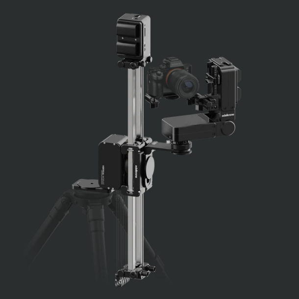Edelkrone SlideMaster Bundle je celovita rešitev za filmske ustvarjalce in ustvarjalce vsebin, ki želijo izboljšati svoje produkcijske zmogljivosti. Ta paket združuje povečan doseg modula SliderPLUS PRO Long, učinkovitost motornega modula, prilagodljivost navpičnega snemanja vertikalnega modula in inteligentne zmogljivosti gibanja modula HeadPLUS v3. Skupaj tvorijo vsestranski, kompakten in profesionalen sistem za nadzor gibanja, ki je idealen za dinamične videoposnetke in sekvence s časovnim zamikom.