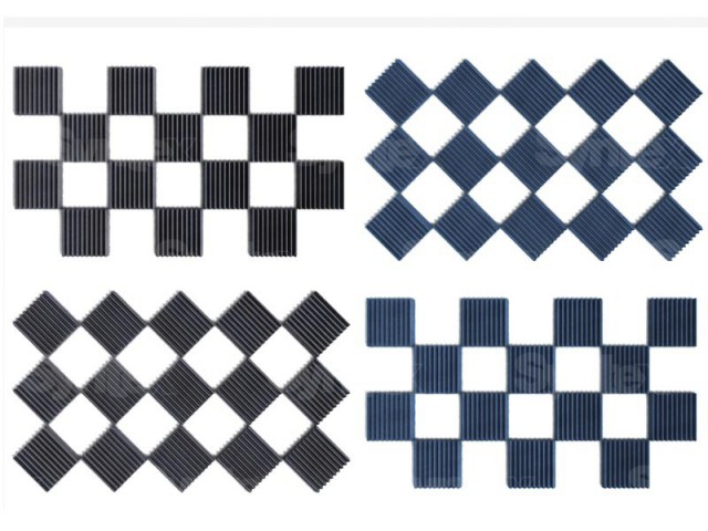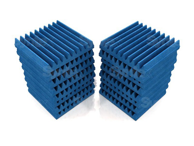 Akustična pena z zagotovljenimi akustičnimi parametri. Absorpcijska pena je primerna za snemalni studio, domači studio, prostore za glasbene vaje, domači kino itd. Akustična pena pakiranje 16 kosov modre barve velikost 30x30x5 cm
