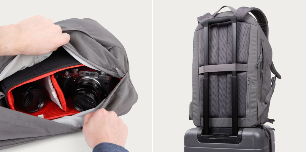 Nahrbtnik je zelo prilagodljiv, opremljen je z vstavnim sistemom pritrditve, ki omogoča vgradnjo 4- ali 8-litrskega kockastega predela za fotoaparat, s čimer se spremeni v popolnoma funkcionalno torbo za fotoaparat. Posebni oblazinjeni predal za prenosni računalnik varno sprejme naprave do 14 palcev, medtem ko značilen navpični žep za hiter dostop omogoča hiter dostop do nujnih stvari, ko ste na poti.