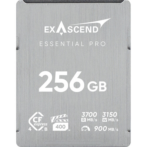 Exascend CFexpress 4.0 Type B Essential Pro Series 256 GB je zasnovan za hitrost, trajnost in vzdržljivost, zato je idealna izbira za profesionalne fotografe, filmarje in ustvarjalce vsebin. Ta kartica uporablja vmesnik PCIe 4.0 / NVMe 1.4 in zagotavlja izjemno zmogljivost z največjo hitrostjo branja 3700 MB/s in hitrostjo pisanja do 3150 MB/s. Z minimalno trajno hitrostjo zapisovanja 400 MB/s (VPG-400) zagotavlja stabilno in zanesljivo snemanje videoposnetkov visoke ločljivosti 8K in serijske fotografije.