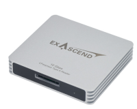 Čitalnik kartic Exascend EXCRCFX1 CFexpress Type B omogoča hitrost branja 1700 MB/s prek USB 3.2 Gen 2. Izdelan je iz aluminija in vključuje kable USB-C na C/A. Idealno za hiter prenos 8K RAW in fotografij v profesionalnih delovnih procesih.