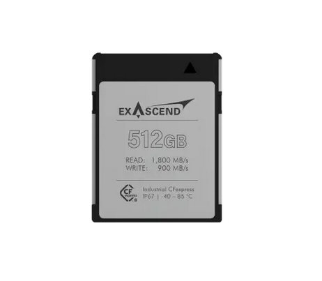 Exascendove industrijske kartice CFexpress so narejene tako, da se dobro obnesejo v industrijskih okoljih in se odlično obnesejo v širokem temperaturnem razponu od -40 °C do +85 °C. Imajo konformni premaz z oznako IP67 in robustno lupino, ki je odporna proti vlagi, prahu in onesnaževalcem. Izjemna vzdržljivost zagotavlja zanesljivo delovanje tudi v ekstremnih pogojih, vključno z vibracijami, udarci in okoljskimi nevarnostmi.