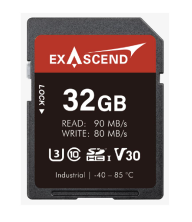 Exascend Industrial SD300 V30 C10 SD 6.0 32 GB (EX32GSDV30-IDE) je robustna SDXC kartica za industrijske aplikacije, ki omogoča hitrost branja do 90 MB/s in hitrost pisanja do 80 MB/s z oceno V30/U3/C10/A2 za zanesljivo snemanje 4K videa in serijsko fotografiranje. Deluje pri temperaturah od -40 °C do +85 °C, ima MTBF 2.000.000 ur, vzdržljivost do 1.210 TBW in vhodno napetost 2,7–3,6 V, kar je idealno za zahtevna okolja, kot so nadzor, avtomobilska industrija ali vgrajeni sistemi.
