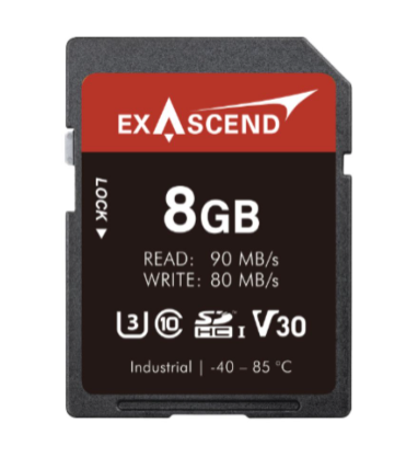 Exascend Industrial SD300 V30 C10 SD 6.0 8 GB (EX8GSDV30-PIDE) je robustna SDXC kartica za industrijske aplikacije, ki ponuja hitrost branja do 90 MB/s in hitrost pisanja do 80 MB/s s 3D TLC/pSLC NAND, V30/U3/C10/A2 za zanesljivo snemanje 4K videa in serijsko snemanje. Deluje pri temperaturah od -40 °C do +85 °C s sistemom za spremljanje stanja…