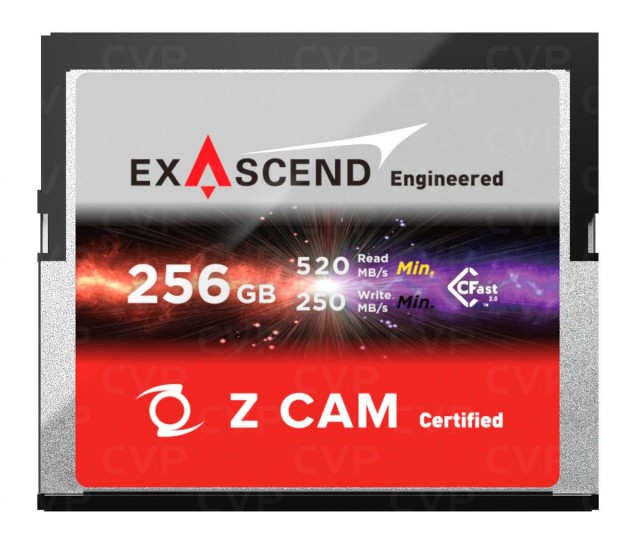 Kartica Exascend ZCAM 256 GB CFast 2.0: visoko zmogljiv pomnilnik kinematografske kakovosti z adaptivnim nadzorom temperature (ATC), trajno hitrostjo za surove videoposnetke 8K/6K in robustno zanesljivostjo – idealna za kinematografske kamere/snemalnike Z CAM, Blackmagic, Canon in Atomos.