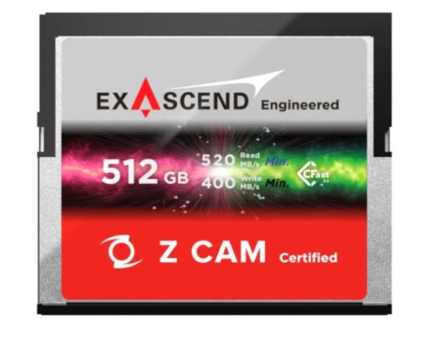 Exascend EXSZ3X512GB je Z CAM-certificirana pomnilniška kartica CFast 2.0 s kapaciteto 512 GB, zasnovana za profesionalne kinematografe, ki potrebujejo izjemno zanesljivost pri zahtevnih snemanjih. Z neprekinjeno hitrostjo branja in pisanja do 520 MB/s zagotavlja, da med snemanjem 4K/6K z visoko bitno hitrostjo ne pride do izgube okvirjev. Exascendova ekskluzivna tehnologija Adaptive Thermal Control (ATC) neprekinjeno spremlja in uravnava toplotno zmogljivost, da prepreči zadušitev, in ohranja vrhunsko kakovost storitev tudi v zahtevnih pogojih. Kartica je izdelana iz komponent industrijske kakovosti in ponuja doživljenjske posodobitve strojne programske opreme za stalno združljivost z Z CAM ter dodatno storitev Factory Data Rescue za obnovo podatkov s fizično poškodovanih kartic.