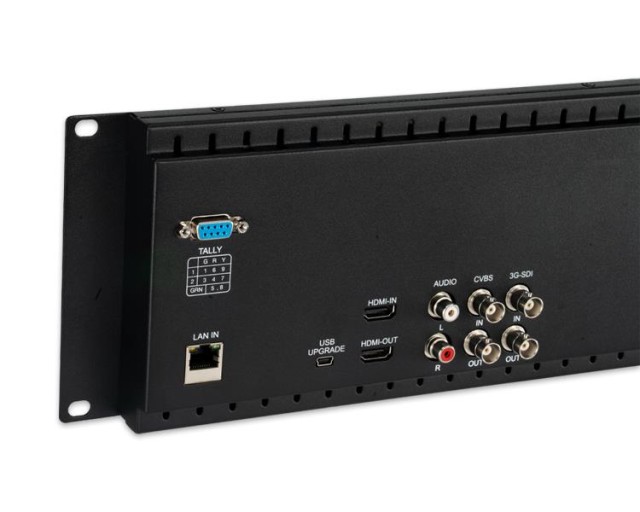 Na sprednji strani je indikator TALLY za vsak zaslon, s prikazom treh barv (rdeča, zelena, rumena), ki se upravlja prek vrat DB-9 na zadnji plošči. Izboljšajte sodelovanje v ekipi.